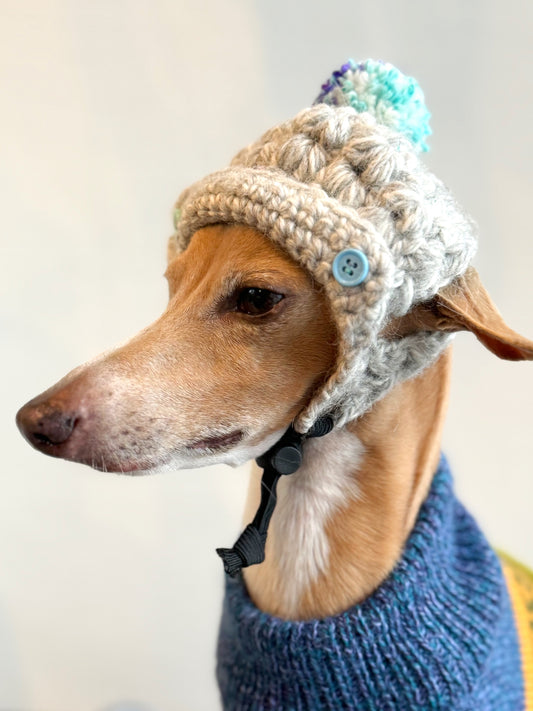 Dog 2 way Pompom Cap <Oatmeal ※ Blue>