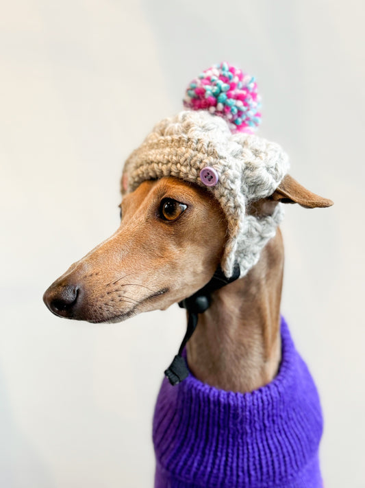 Dog 2 way Pompom Cap <Oatmeal ※ Pink>